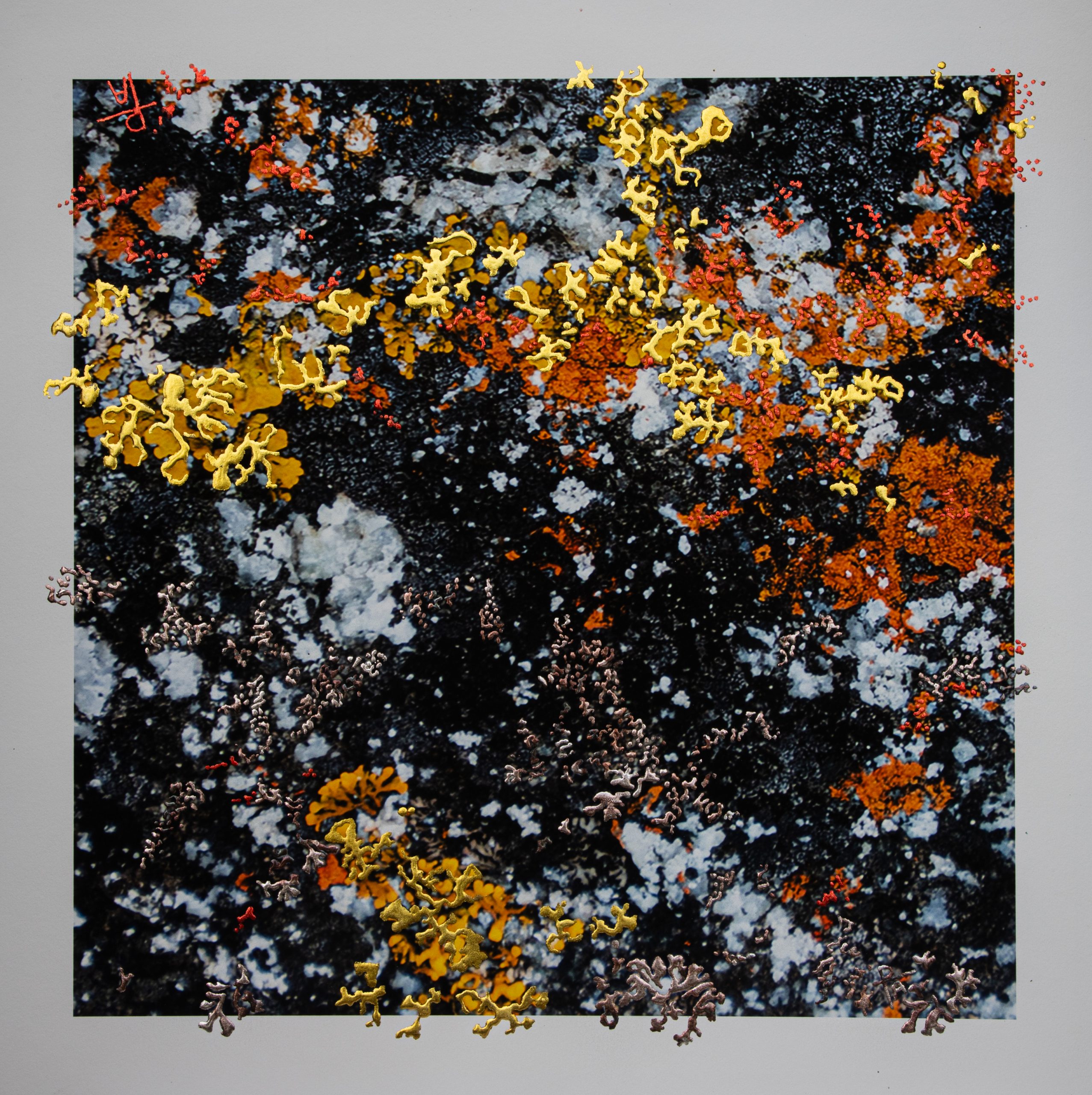 Gilded with silver leaf in three colours and printed on archival FineArt paper. This artwork changes character throughout the day as the reflective surfaces catch and shift with natural light. It can be displayed in four orientations and may be shown alone or as part of a commanding triptych.