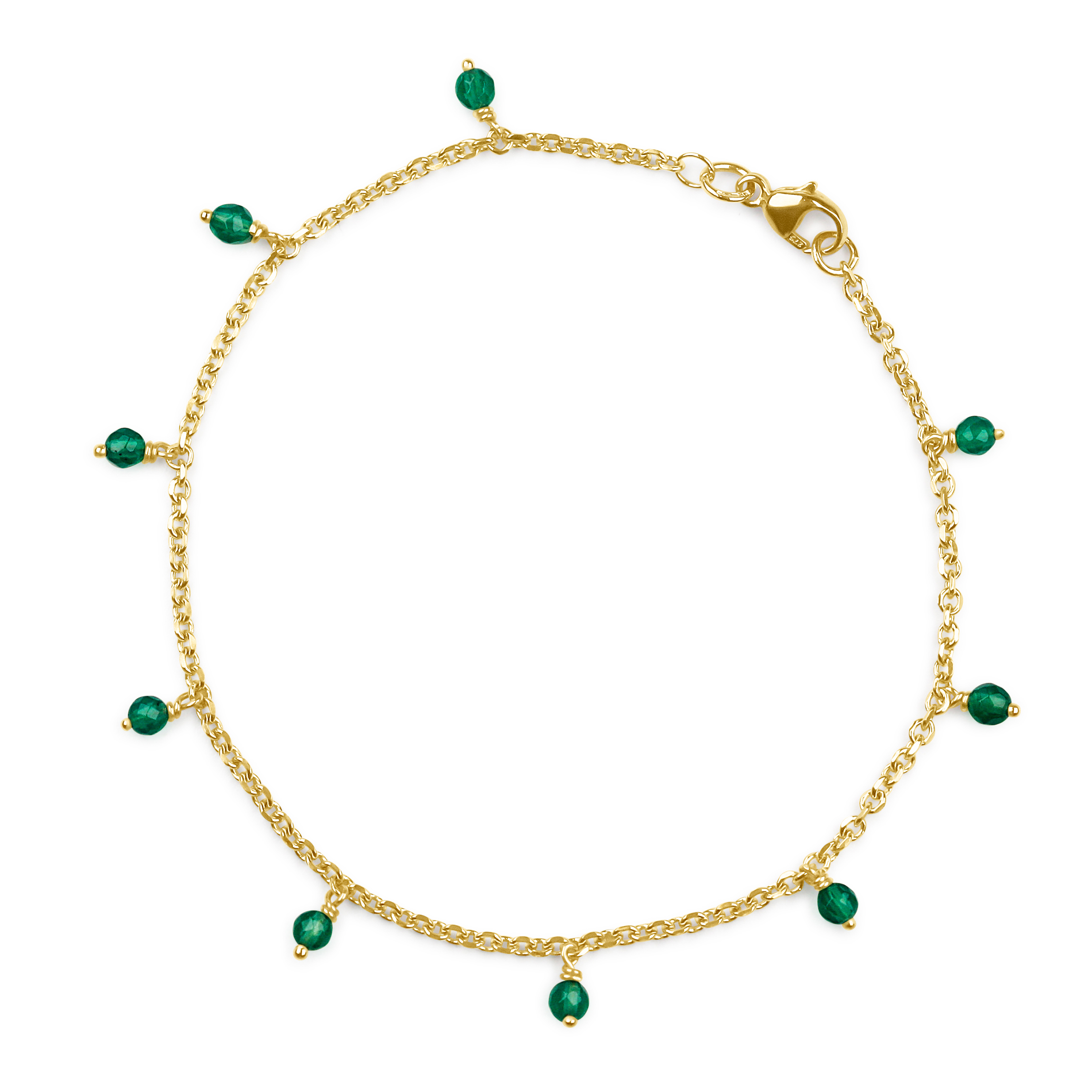 Crafted with KATA’s signature diamond-cut chain, each faceted link catches the light with a subtle, luxurious sparkle. From this elegant chain, a cascade of beautifully polished green agate beads dances freely — giving the bracelet its gentle, expressive movement.