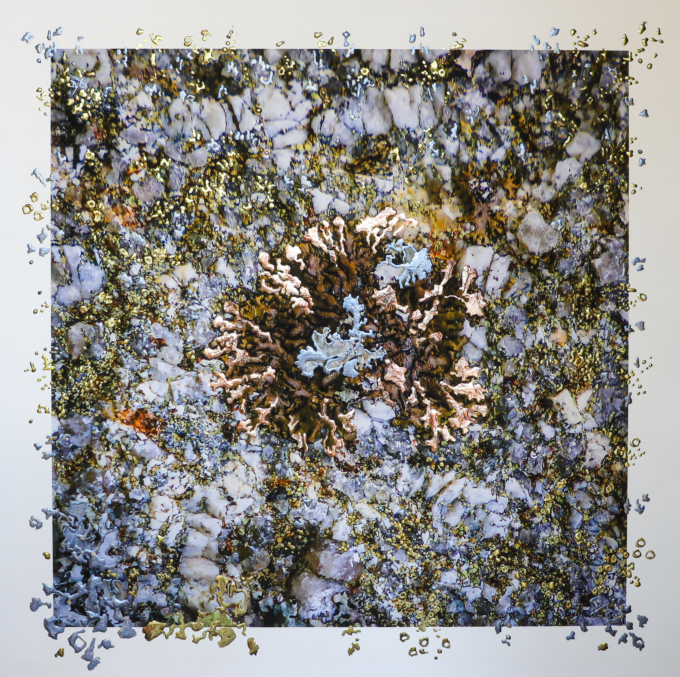 Inspired by lichen flourishing on a granite boulder in Tasmania. Granite Garden II reveals an intricate circular form that appears part flower, part coral, part evolving landscape.