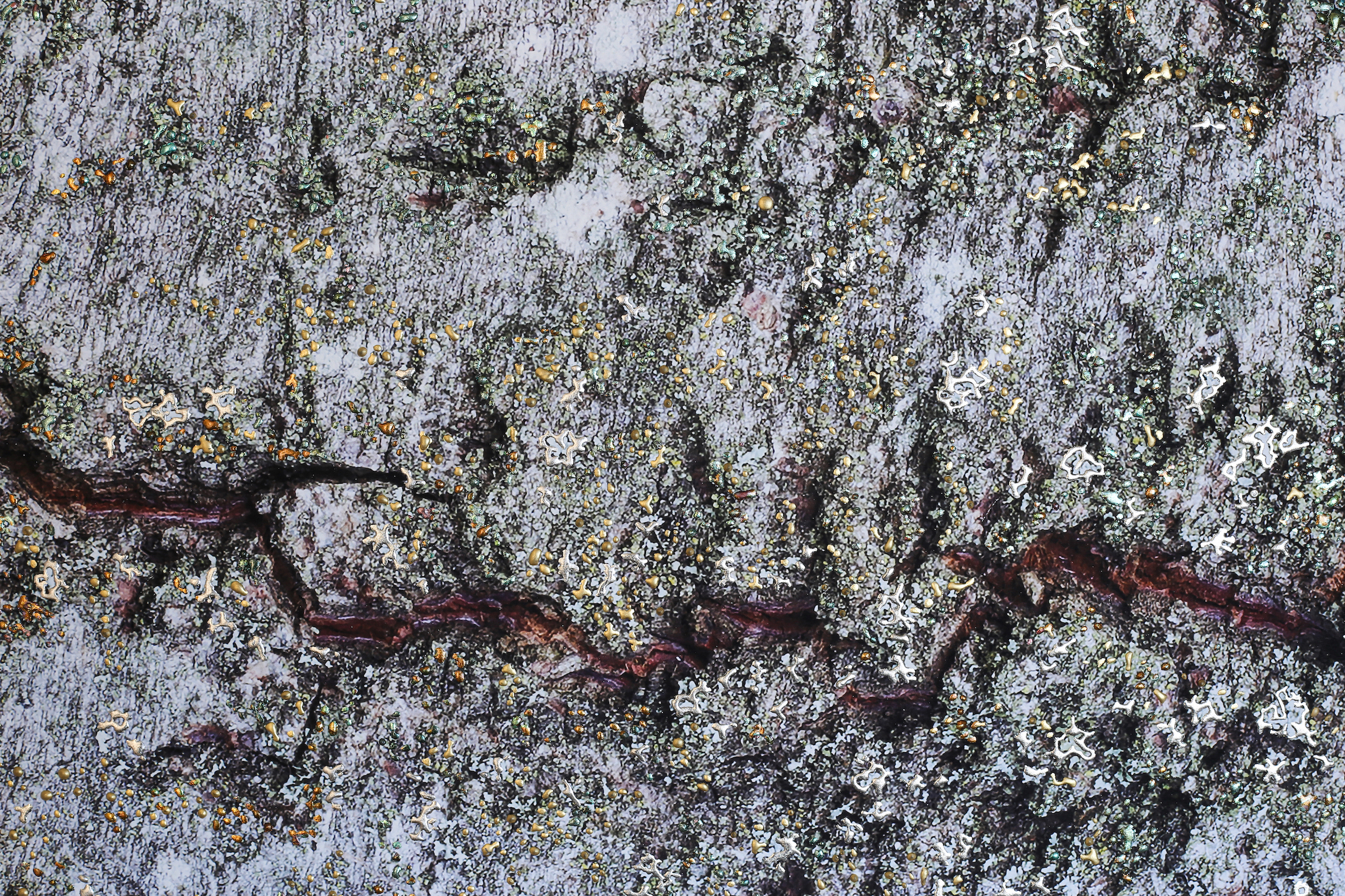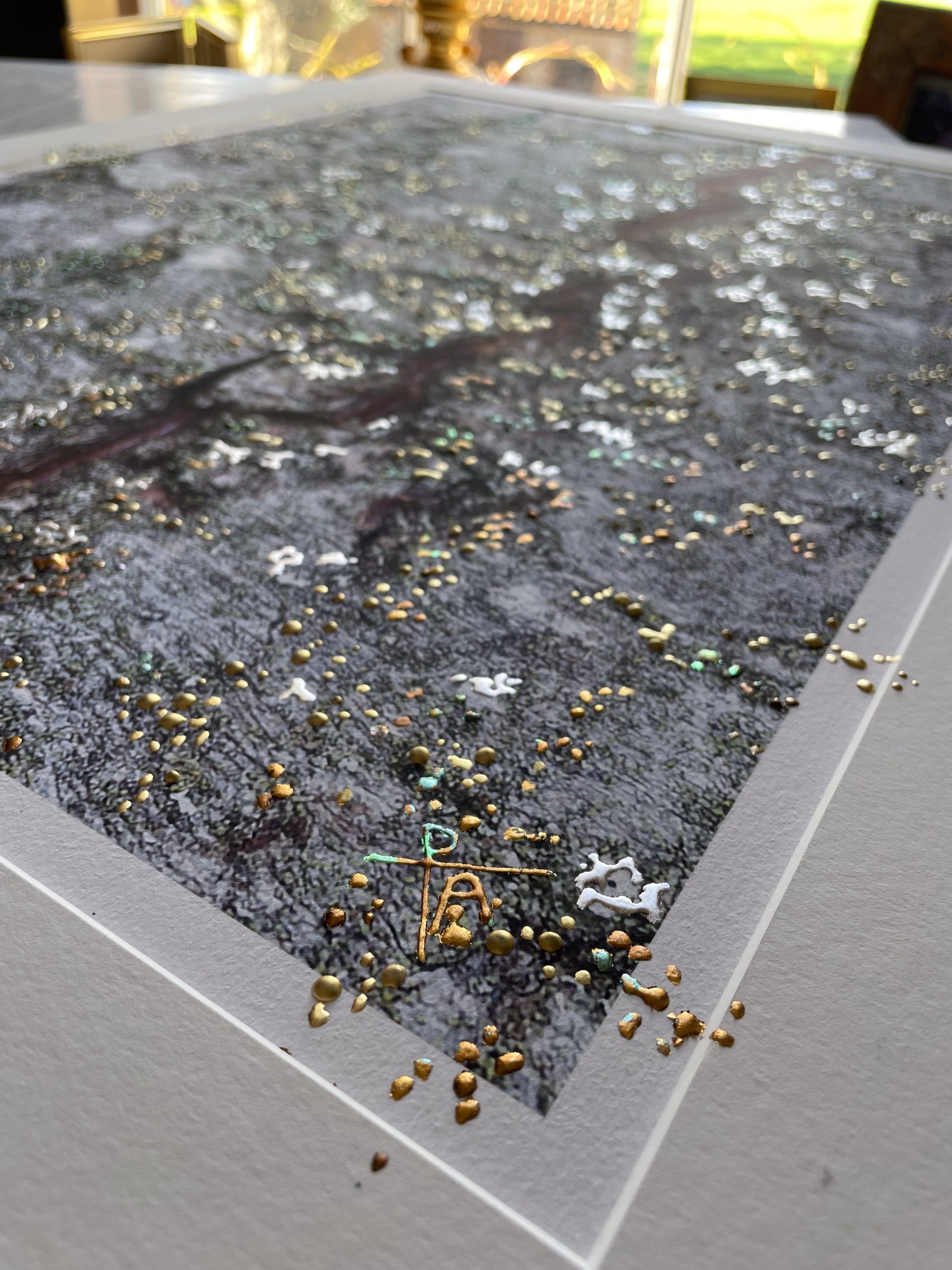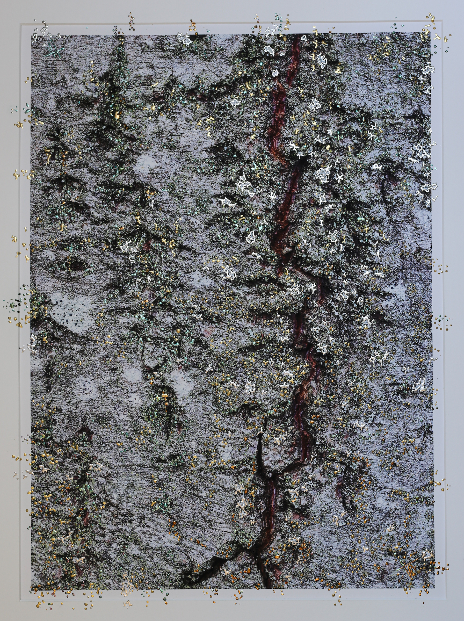 Crafted using pigment print on archival textured FineArt paper, Kent artist Pari Aazami gilds the surface with 23kt gold, tin leaf, and six shades of silver leaf, creating a richly layered landscape of renewal and strength.